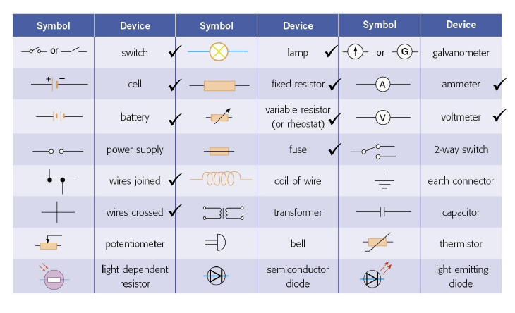 - Potential Difference (p.d.) -> work done to drive a unit charge through the component