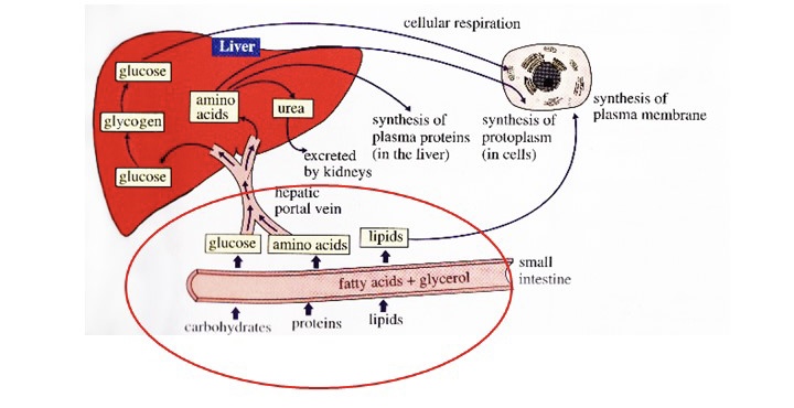 - Digested food substances transported away from the blood capillaries and lacteals to maintain concentration gradient for diffusion