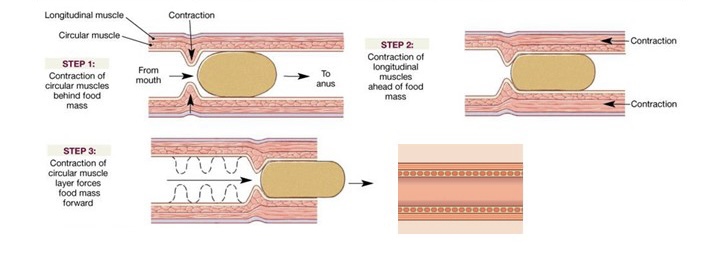 | In front of the bolus | Relax (Tube widens) | Contract (Tube shortens) |