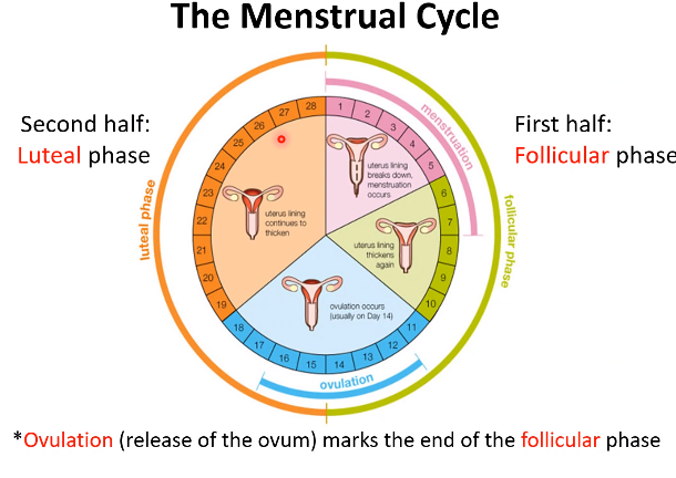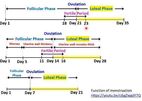 - Luteal phase is constant (14 days)