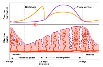 - controlled by the female hormones oestrogen and progesterone